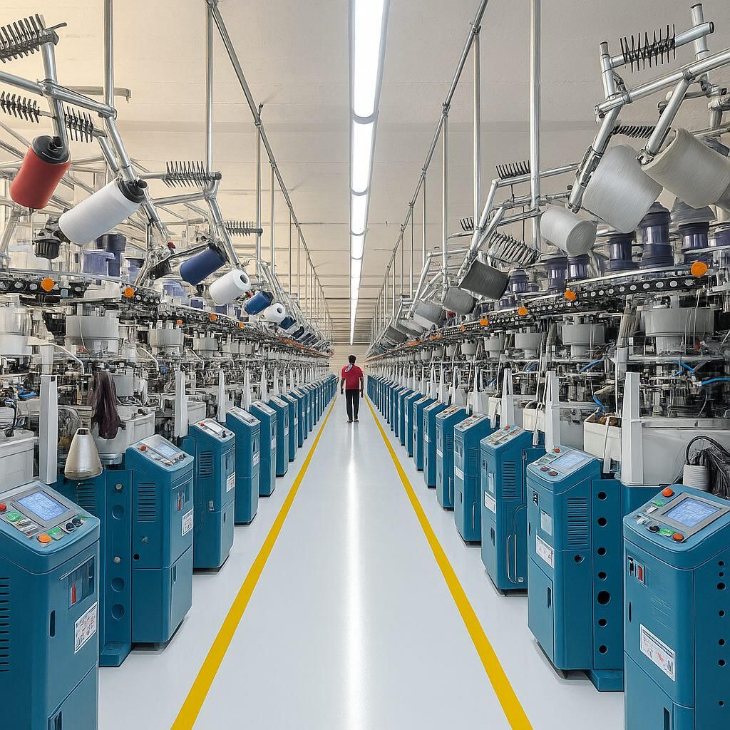 Dysponujemy ponad 800 nowoczesnymi maszynami Lonati, przystosowanymi do precyzyjnej produkcji skarpet najwyższej jakości. Dzięki zaawansowanej automatyzacji jesteśmy w stanie realizować duże wolumeny zamówień w krótkim czasie, zachowując pełną powtarzalność, elastyczność wzorniczą i najwyższe standardy wykonania.
